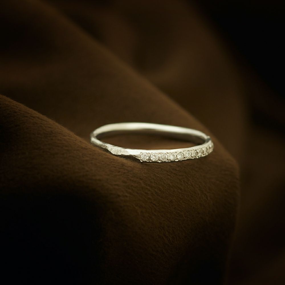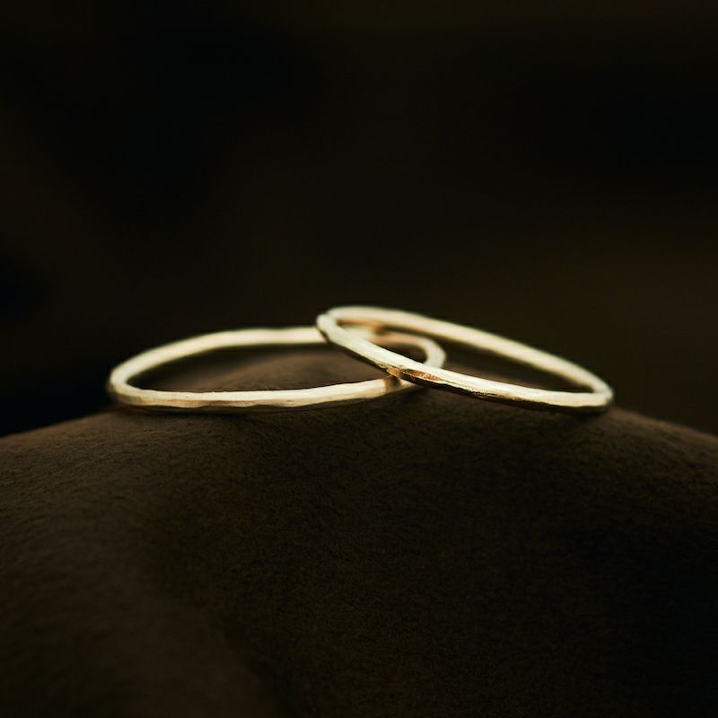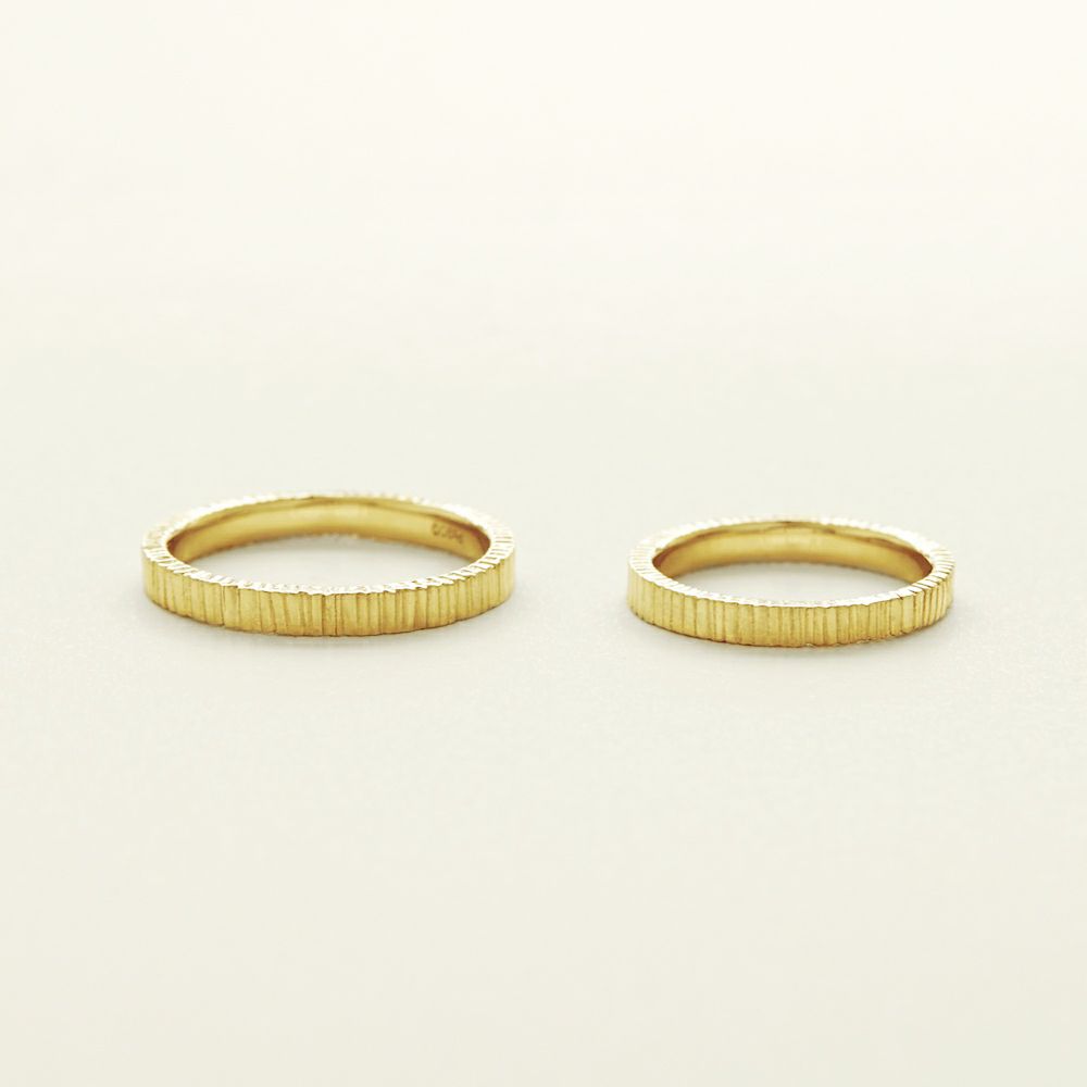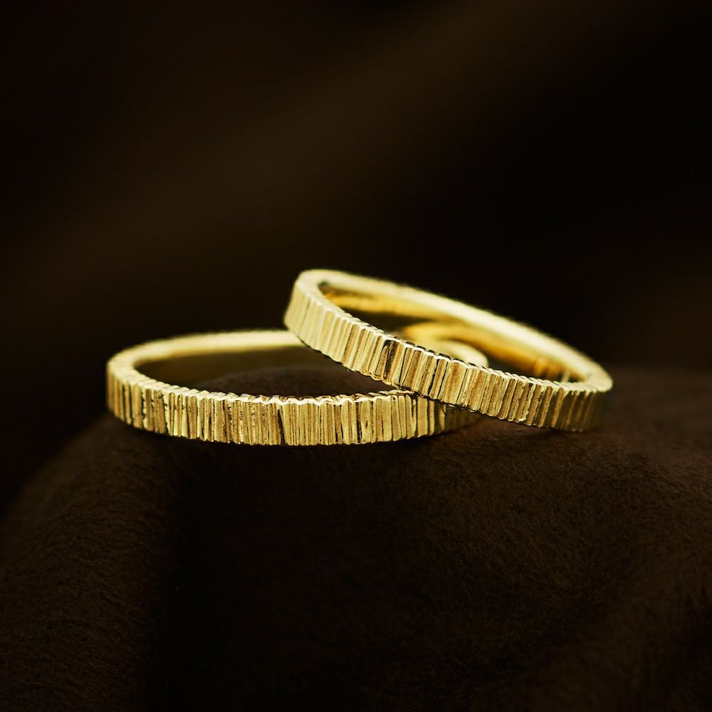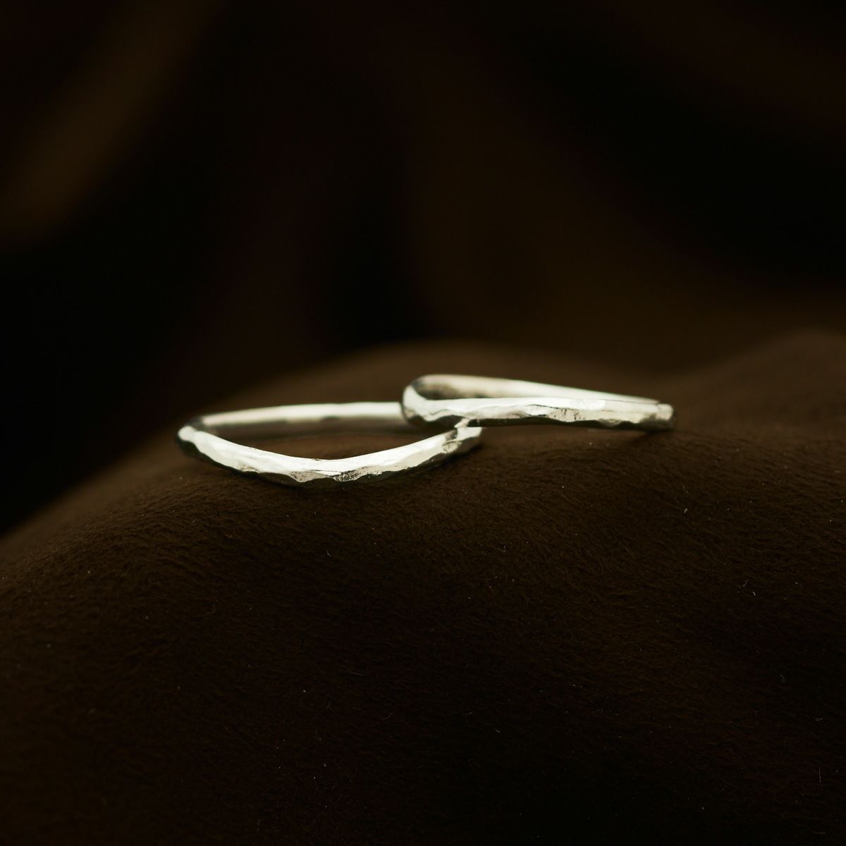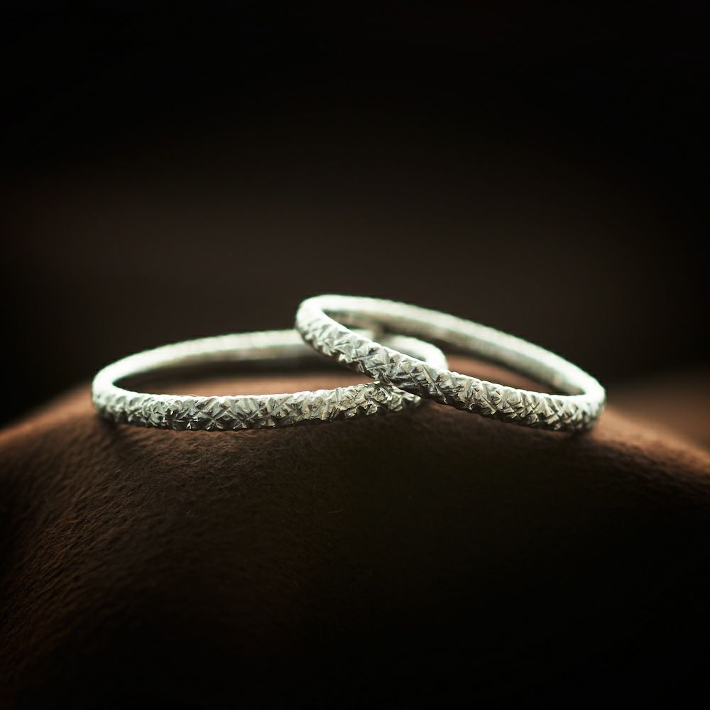 あたたかみのある削り痕やスクラッチをあえて施した CASUCA ならではの有機的なデザインは、手に取ったその日から 肌に寄り添うように静かになじむ 優しさを感じさせます。お二人の未来が 素晴らしいものになりますようにと、約束のマリッジリングには 聖人たちの名前をつけています。