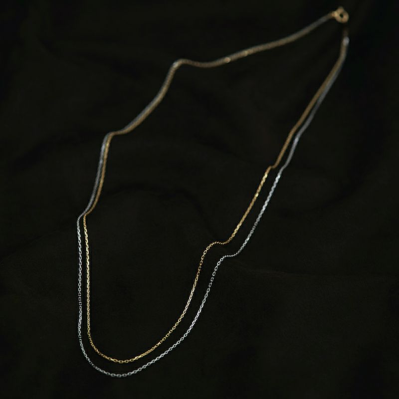 新たなネックレスの考え方。 英語の"unite"からとったこの名前は、「一体になる」「団結する」という意味があります。 K18のイエローゴールドとプラチナのホワイトカラー、この2つの素材がさりげなくひとつになって、繋がりとか、ご縁を、大切にあたためていきたいと言う思いを持って生まれたノーブルでクールなジュエリー。 単つでさり気なく着けても、ロングは二重にしても、三重四重にしてブレスレットとしてもお使いいただけます。