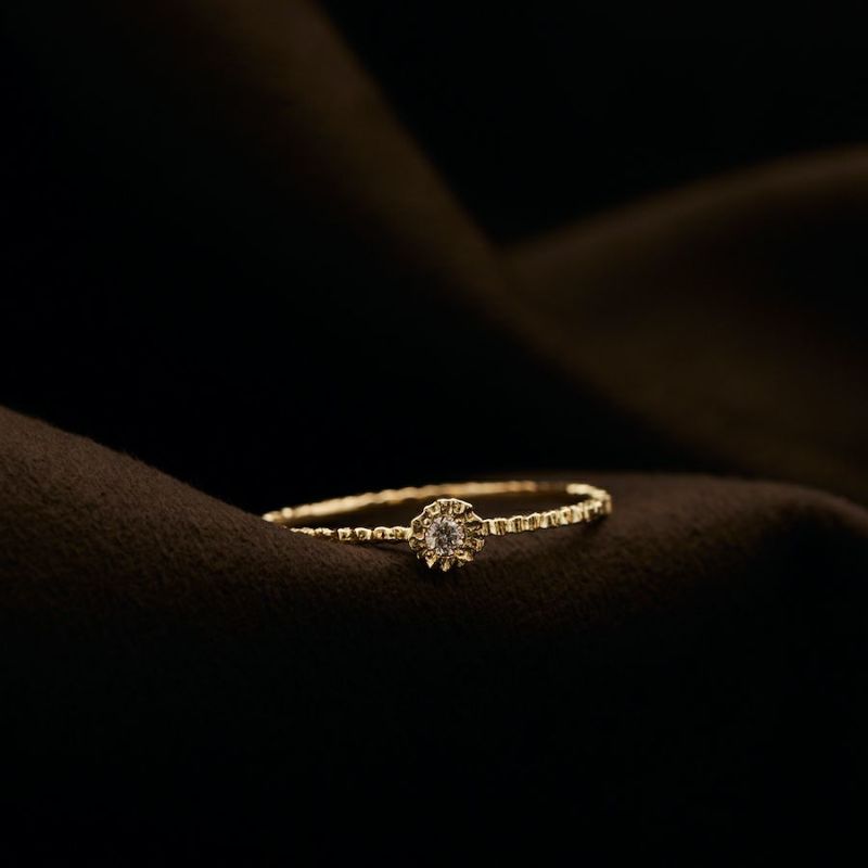 さりげなく輝く花弁のようにダイヤをひっそりと守ります。