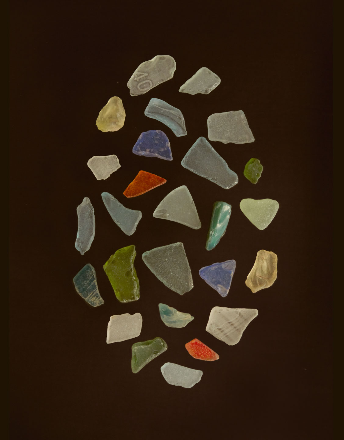 Fragments of glass and mysteriously patterned stones from the memories of childhood.