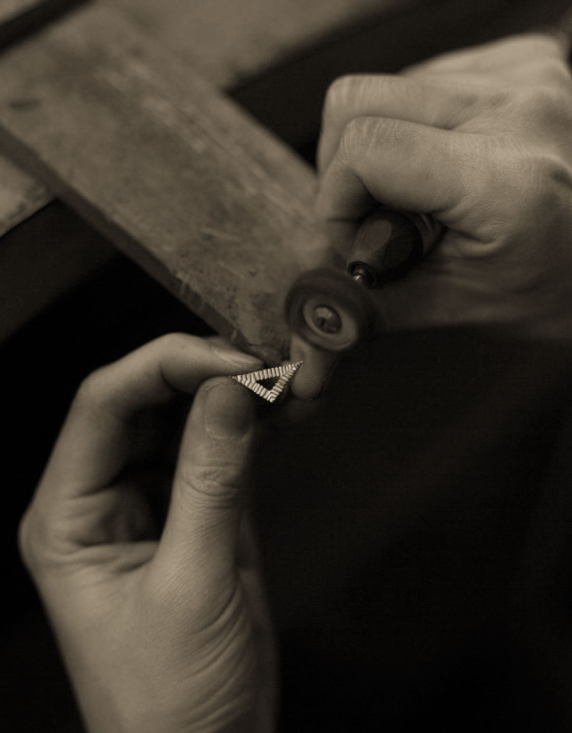 Craftsmen engraving scars into the symbolic motif, tovera.